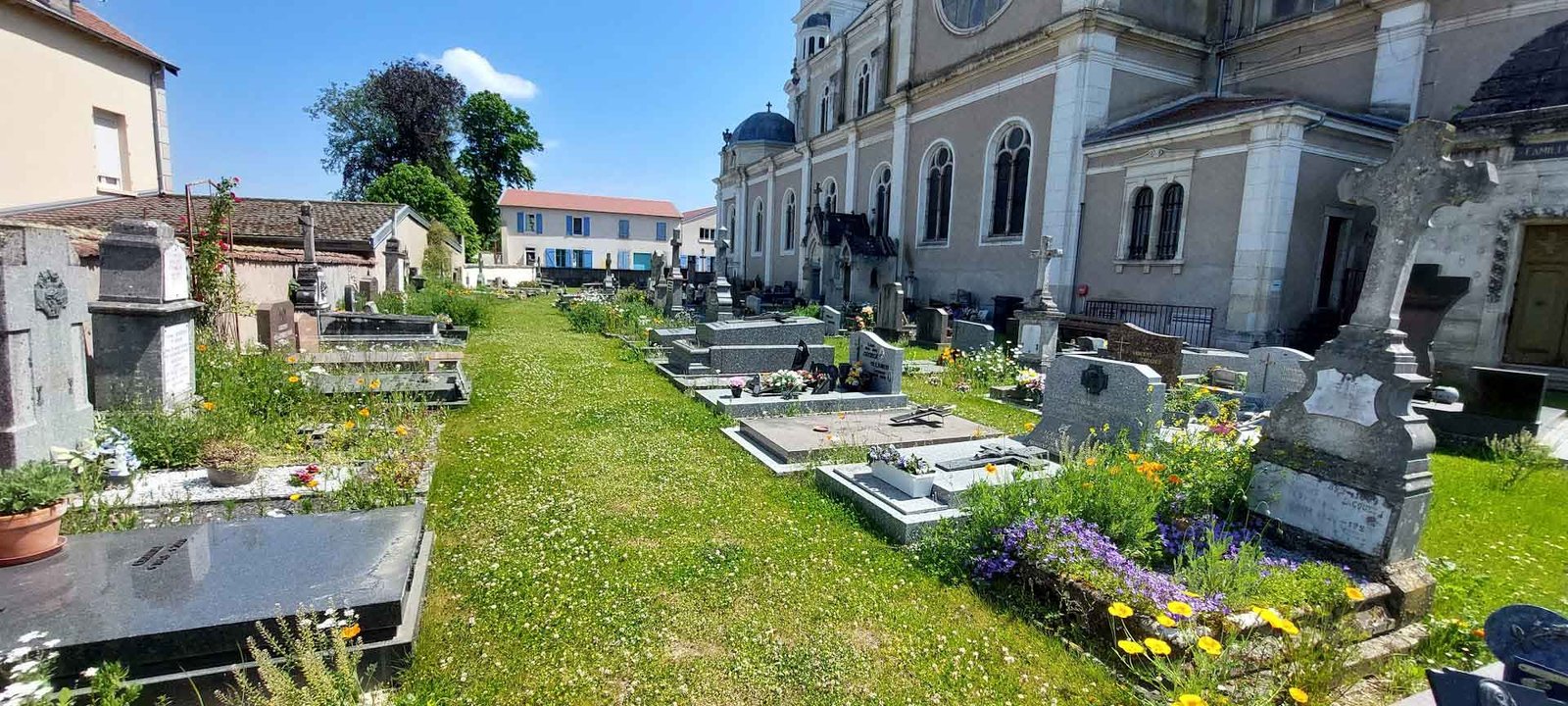 – des semis de fleurs entre les tombes, favorisant la biodiversité et apportant une dimension plus douce et paysagère au lieu.