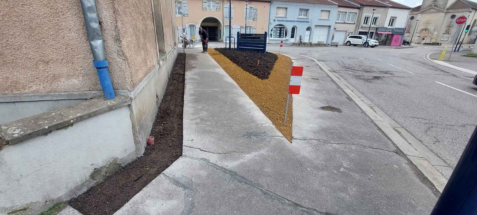 Cette réalisation, menée pour une commune de Meurthe-et-Moselle, porte sur la désimperméabilisation et la renaturation d’une surface de 450 m². L’objectif était de transformer un espace fortement minéralisé en un lieu plus naturel, capable de mieux gérer les eaux pluviales tout en favorisant la biodiversité locale.