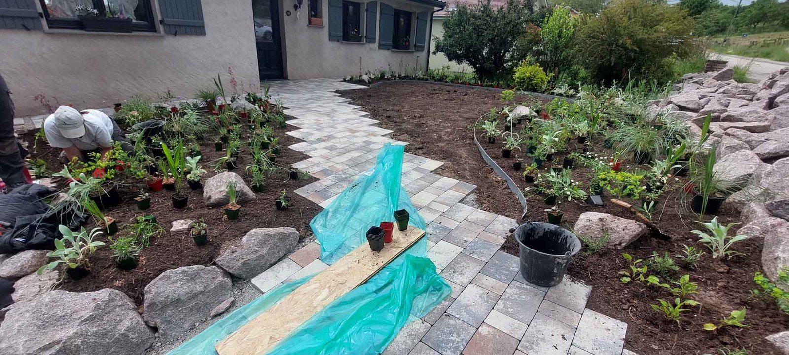Par ailleurs, nous avons accompagné cet aménagement par des plantations vivaces et un enherbement naturel, afin de renforcer la présence du végétal, d’adoucir les formes et de créer un espace extérieur agréable à vivre au quotidien. L’ensemble du projet a été conçu avec des solutions durables, respectueuses du sol et adaptées aux usages des occupants.